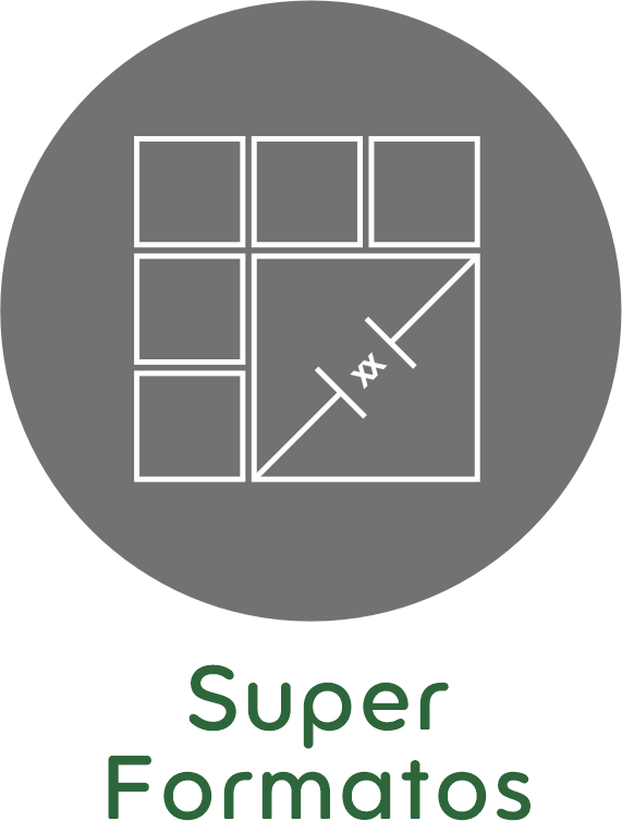 • Porcelanatos, cerâmicas e pedras naturais de grandes formatos em ambientes internos até 170 x 170 cm e externos 150x150cm.